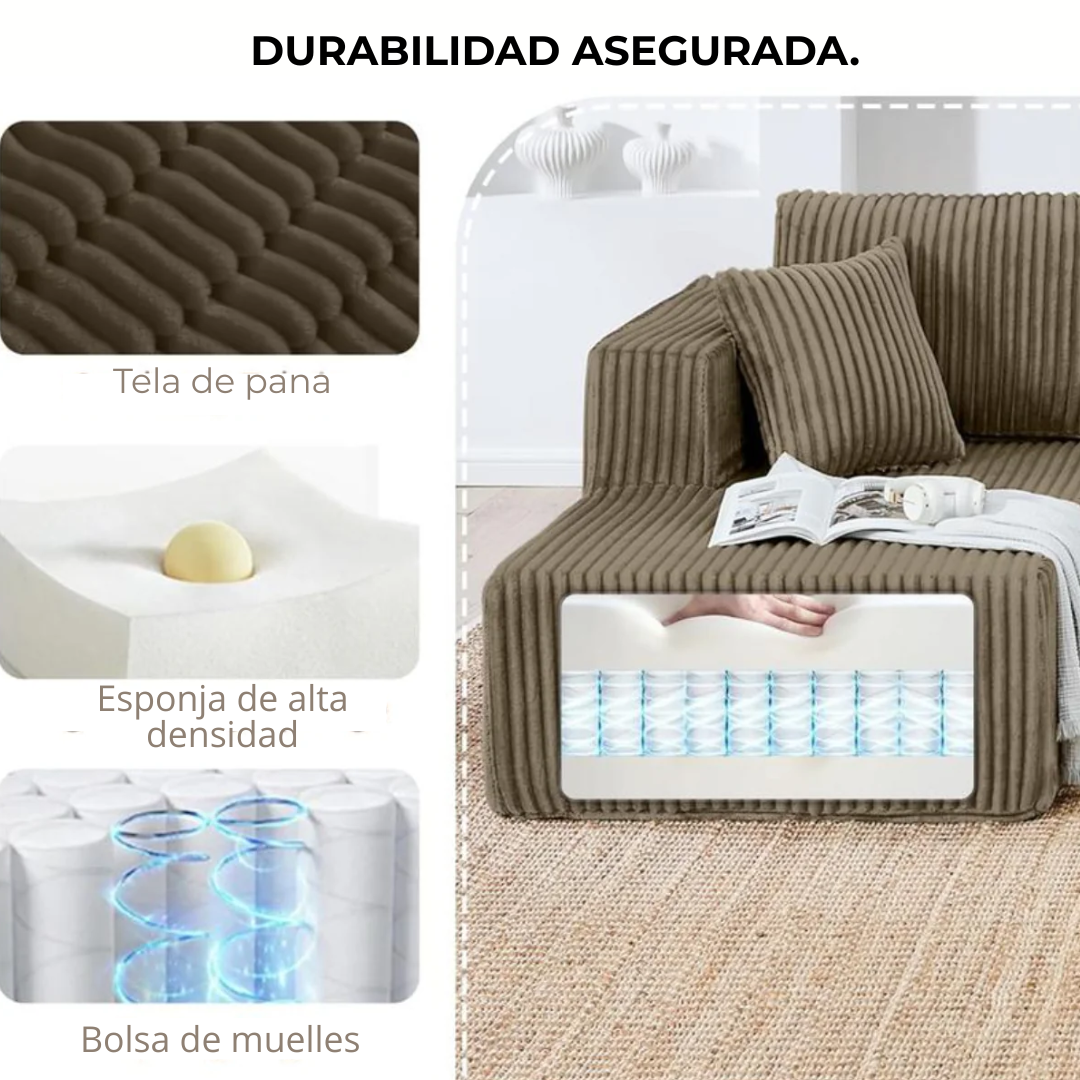 La espuma de alta densidad está diseñada para relajarse: ofrece soporte pero a la vez es lo suficientemente suave para largas noches de cine o siestas.
